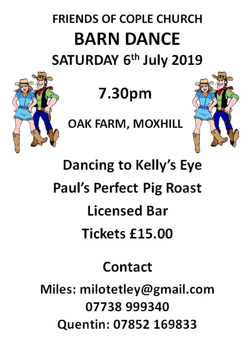 This page lists events that will be local to Cople. Local includes Willington, Cardington, Moggerhanger, Northill and Ickwell. I will consider further afield for special events and those that have a connection with Cople.