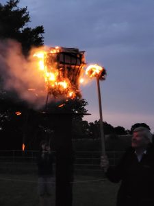 The Fanfare was played by Liz Schofield, followed by the highlight of the evening, which was the lighting of the Beacon, which would be seen for miles. Lord Erroll, Hereditary Lord High Constable of Scotland, who lives locally, did this for us, and we remembered that, at the same time as our Beacon blazed, thousands of others across the UK and the Commonwealth, were being lit. We were not alone.
